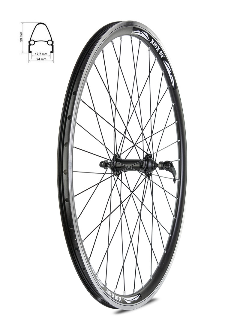 Vorderrad 26 Zoll XMX-Felgenkonus schwarz QR-Nabe Aluminium Schwarz