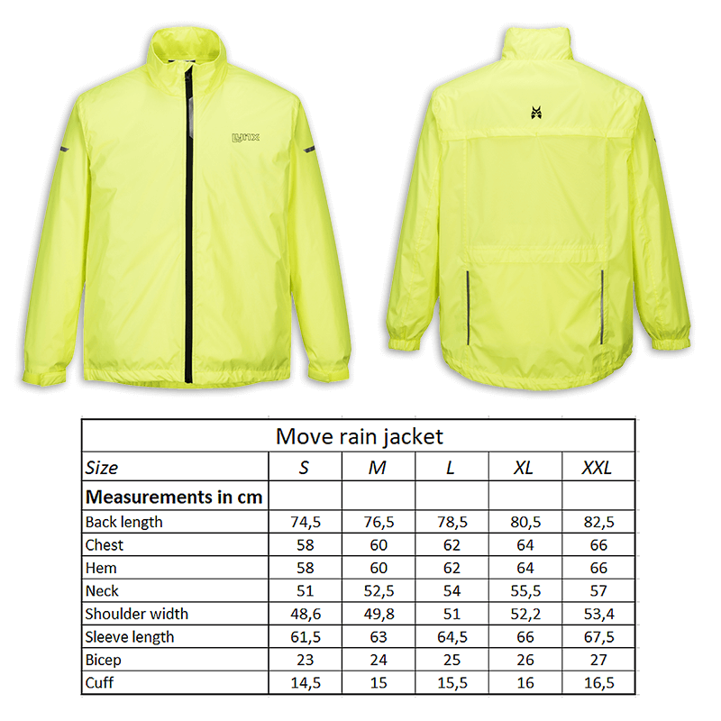 This sporty jacket from Lynx in size L, called Move, is perfect for a bike ride during the colder days. The rain jacket is windproof and has a Mesh inner lining, which ensures good ventilation and moisture absorption. The taped seams and waterproof zipper keep the rider dry during a light to an average rain shower. The raincoat is made of polyester, which makes it supple and lightweight for optimal comfort. On the back of the jacket there is a handy zippered pocket and further ventilation openings for extra breathability. The neon yellow colour in combination with the reflective elements provides better visibility for fellow road users.