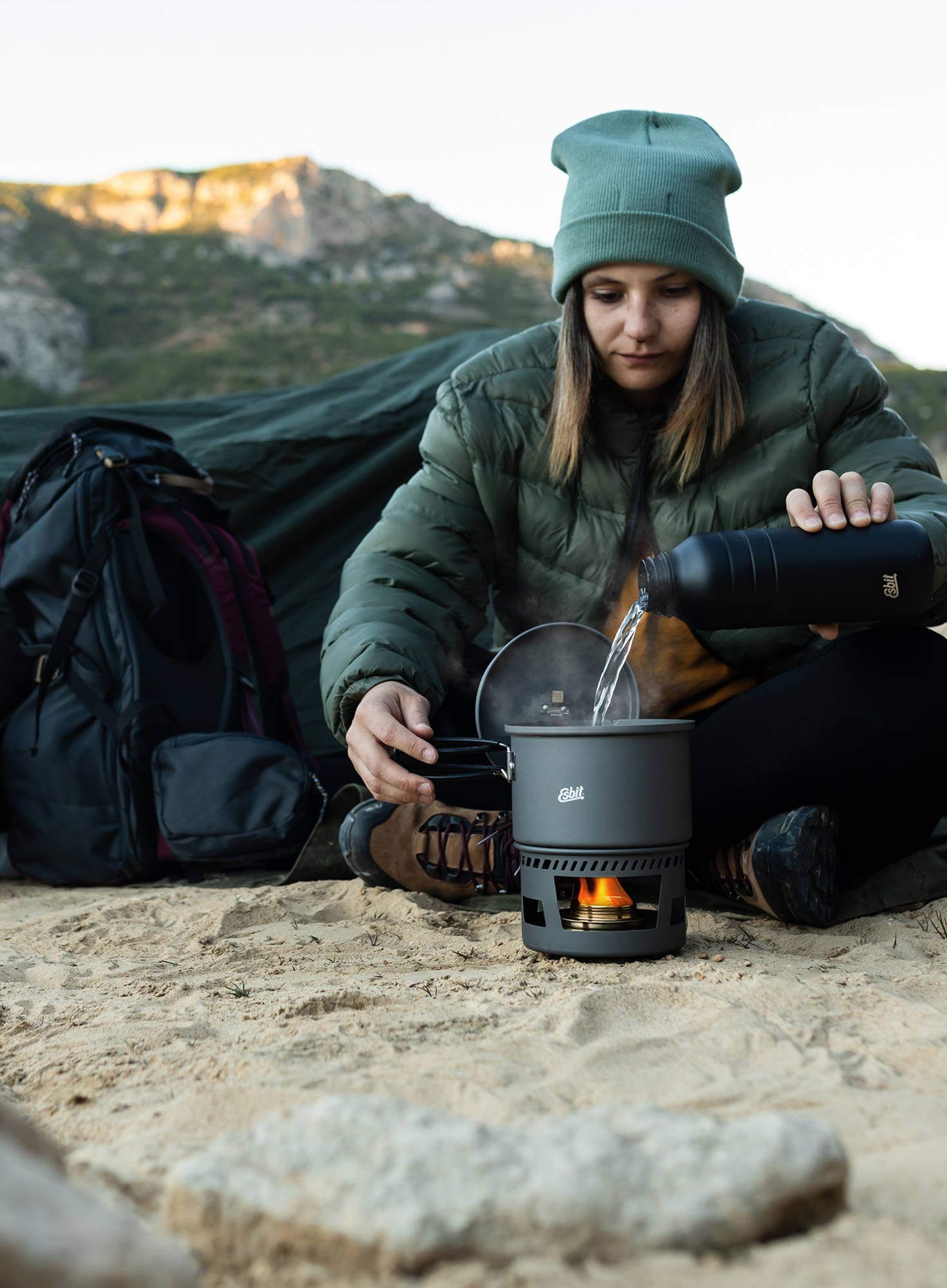 - Das Esbit Solid Fuel Cookset 1500 ist eine praktische und kompakte Lösung. Dank seiner strapazierfähigen Materialien und funktionalen Lösungen ist es ein ausgezeichnetes Kochwerkzeug.