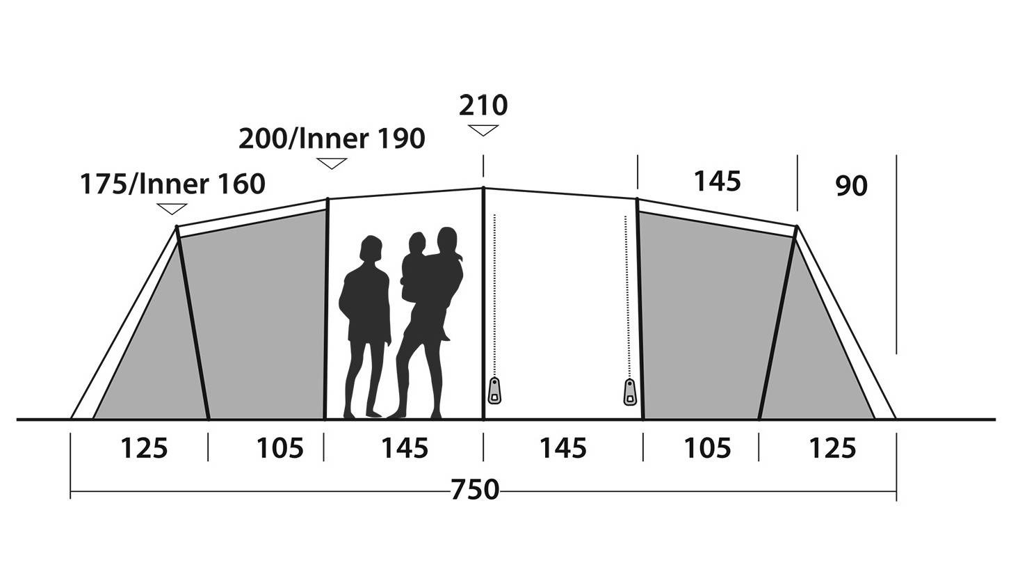 Das Zelt verfügt über vier Schlafkabinen aus atmungsaktivem Polyester. Durch den abgedunkelten Stoff ist auch nach Sonnenaufgang ein erholsamer Schlaf möglich. Der Boden in den Schlafkabinen besteht aus strapazierfähigem Polyethylen. Zusätzlich ist auch der Boden im Vorraum eingelegt, was das Eindringen von Insekten reduziert.