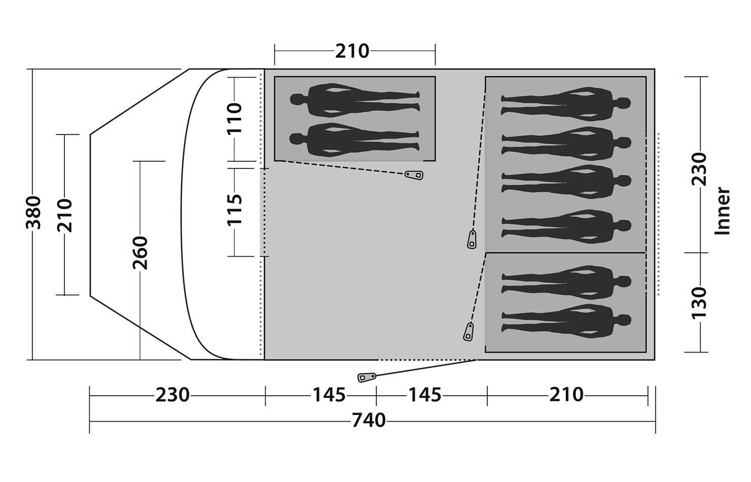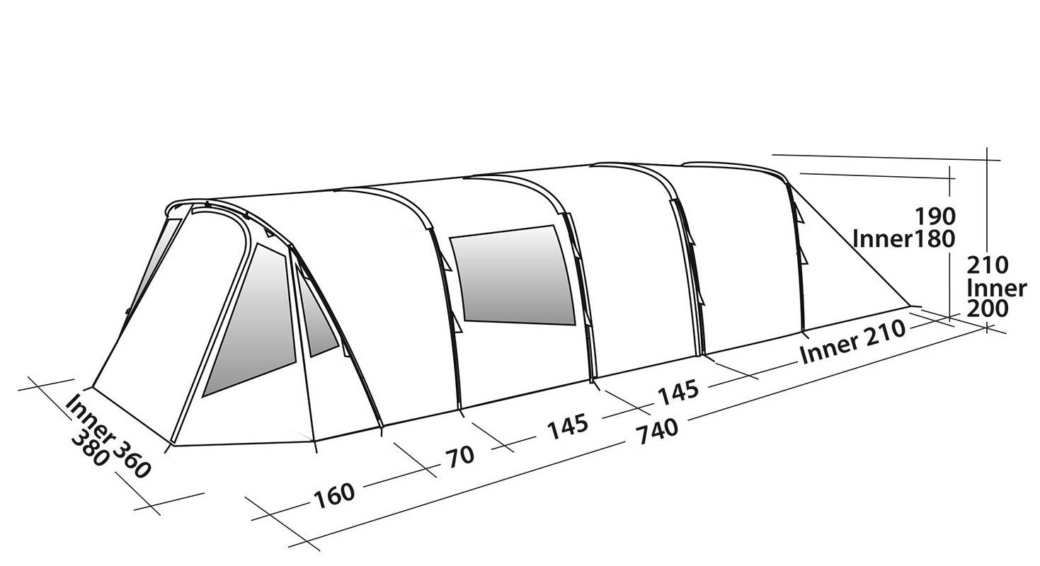 Der Easy Camp Palmdale 800 Lux ist ein vielseitiges Tunnelzelt mit Schlafplätzen für bis zu acht Personen. Es verfügt über eine große hintere Innenwand, eine abtrennbare Innenwand und Stehhöhe im geräumigen Wohnbereich mit seitlichen Fenstern samt Vorhängen. Der große Nassbereich im vorderen Teil für Outdoor-Ausrüstung macht das Zelt zur idealen Lösung für aktive Urlaube. Der Zugang zum Wohnbereich ist flexibel über vollständig insektenfeste Mesh-Türen und einen seitlichen Eingang mit Moskitonetz. Die hintere Belüftung und Frontpaneele aus Mesh sorgen für eine gut regulierbare Luftzirkulation, während Sleep-Tight-Einsätze allen einen erholsamen Schlaf ermöglichen.