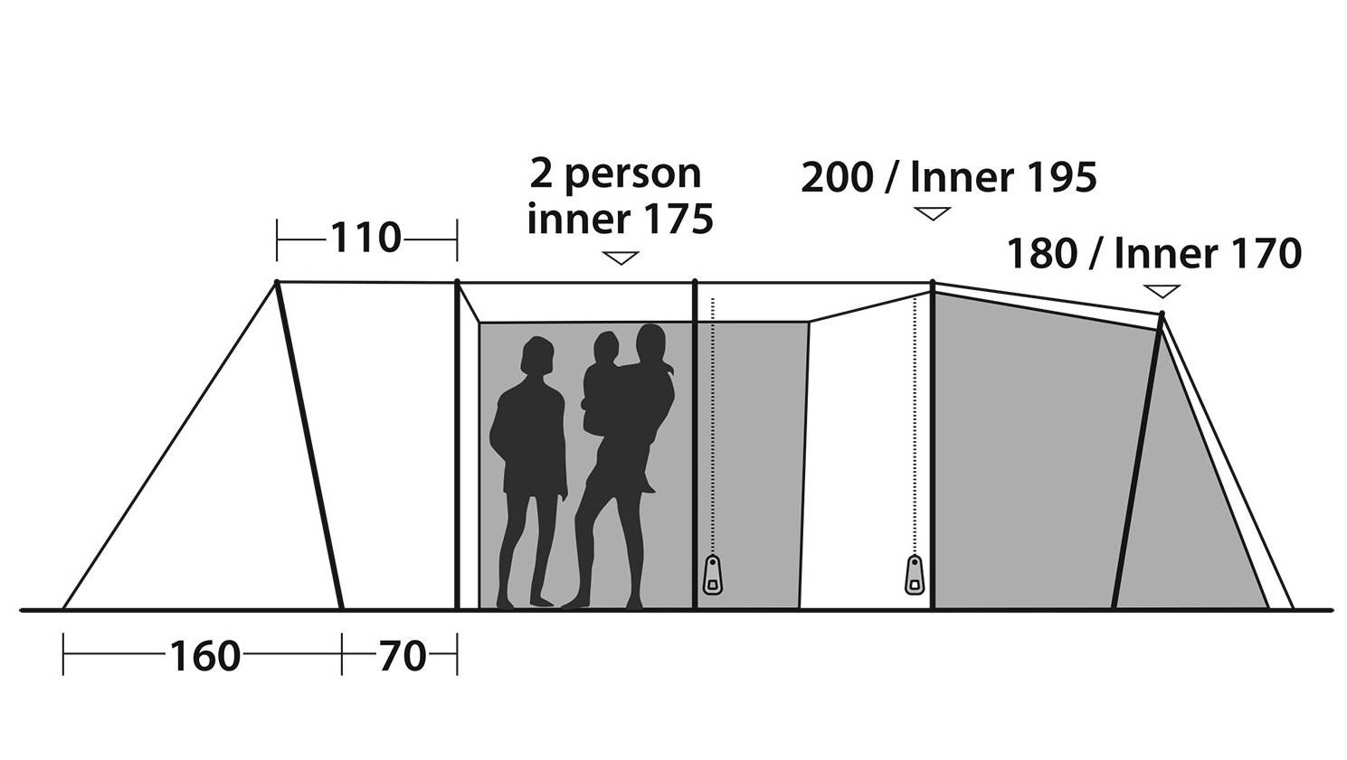 Familien-Tunnelzelt mit großem Wohnbereich und vorderer Nasszone
