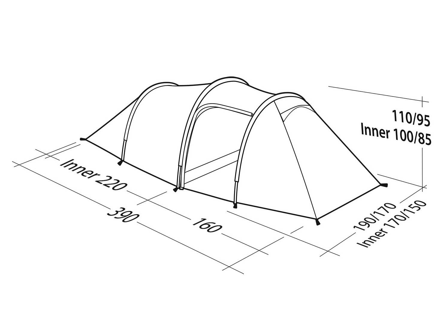- Wasserdichtigkeit des Außenzeltes: 3000 mm Wassersäule