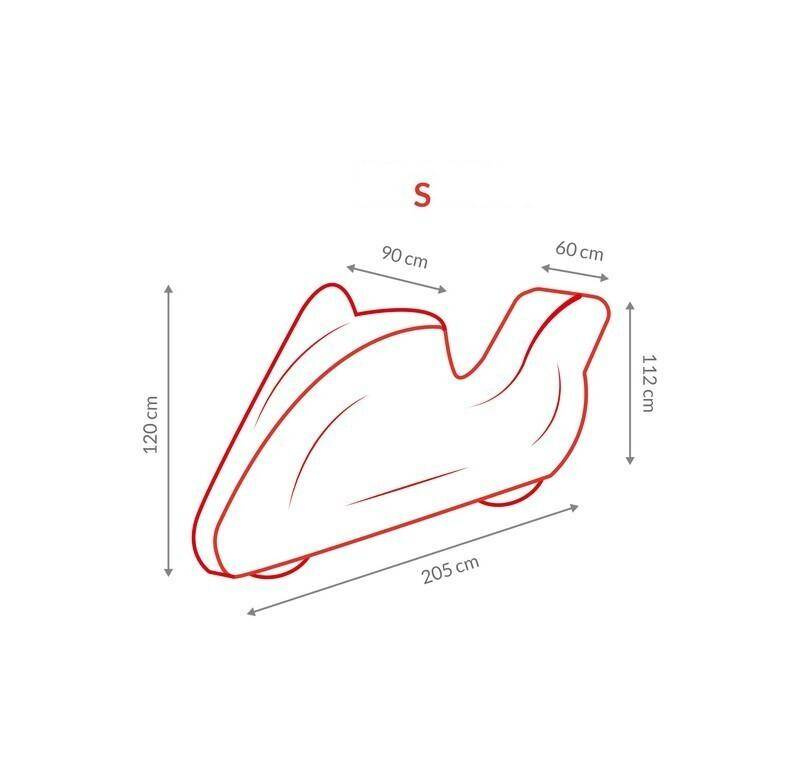 Es wird mit Hilfe eines robusten Zugbands am Vorder- und Hinterrad sowie eines Bands mit einem Plastikverschluss in der Mitte der Abdeckung befestigt. Dadurch liegt die Plane auch bei starken Wetterveränderungen fest am Motorrad an. In der Vorderseite der Abdeckung (am Rad) befinden sich zwei Öffnungen, durch die ein Sicherungsseil oder eine Diebstahlsicherungskette geführt werden können. Die Abdeckung ist in einer praktischen, wiederverwendbaren Verpackung verpackt, die in einem Staufach verstaut werden kann. Das Produkt ist äußerst benutzerfreundlich.