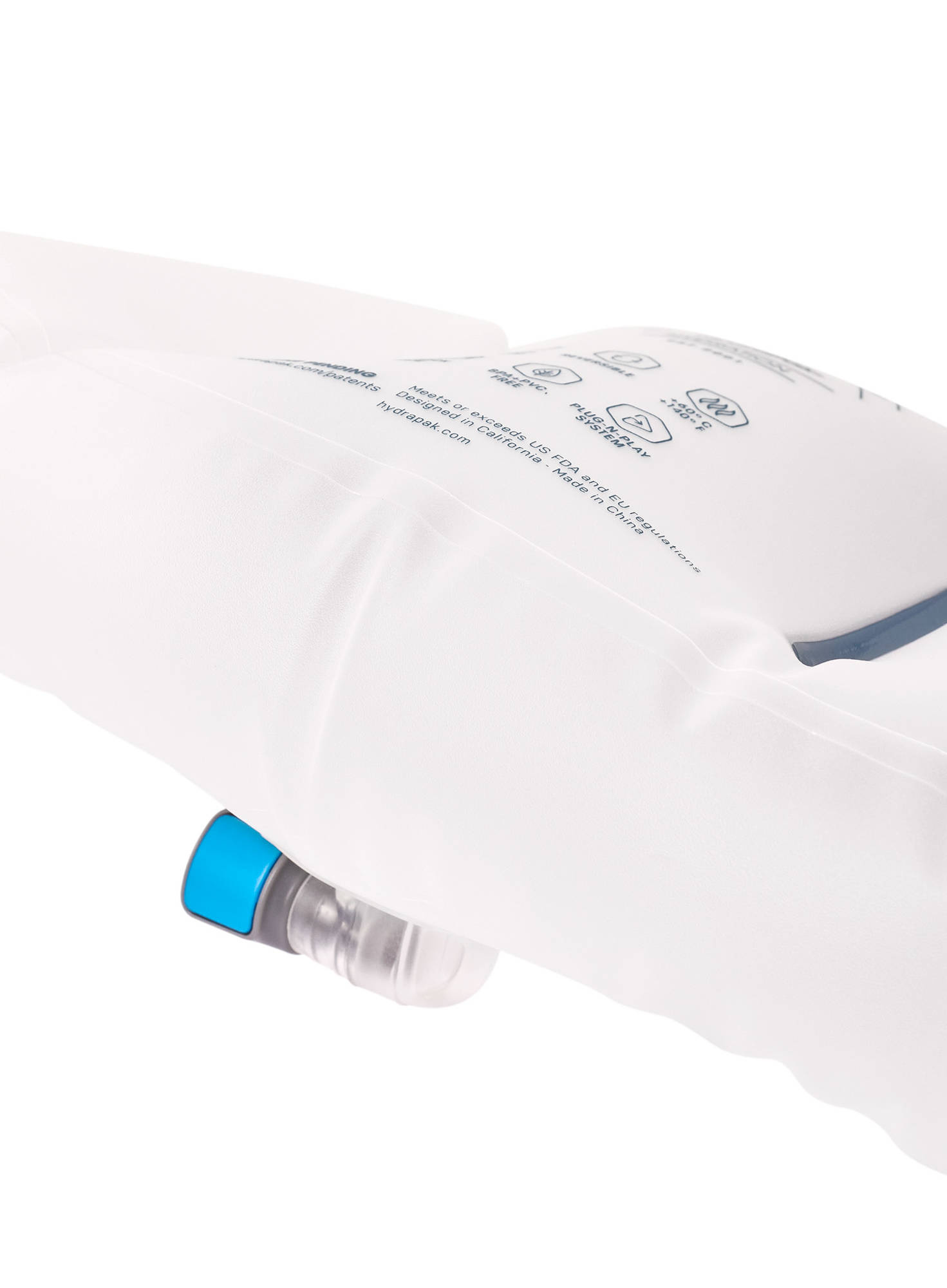HydraPak Contour 1,5 L Lumbar - Clear ist eine Wasserblase, deren Vorteile insbesondere von Radfahrern geschätzt werden, die Wert auf Komfort und einfachen Zugang zu Flüssigkeiten während der Fahrt legen. Diese Trinkblase passt perfekt in eine Hüfttasche und ermöglicht das Auffüllen von Flüssigkeiten, ohne die Fahrt zu unterbrechen. Dank des universellen Griffs oben auf der Trinkblase können Sie sie problemlos an den Schlaufen oder Haken befestigen, die in den meisten Fahrradrucksäcken und Taschen mit Trinksystemen vorhanden sind. Die Trinkblase ist aus strapazierfähigem TPU-Material gefertigt. Mit dem breiten Einfüllstutzen oben können Sie sie leicht mit Wasser füllen, und der Auslauf ermöglicht die Blockierung des Flüssigkeitsflusses mit einer Hand.
