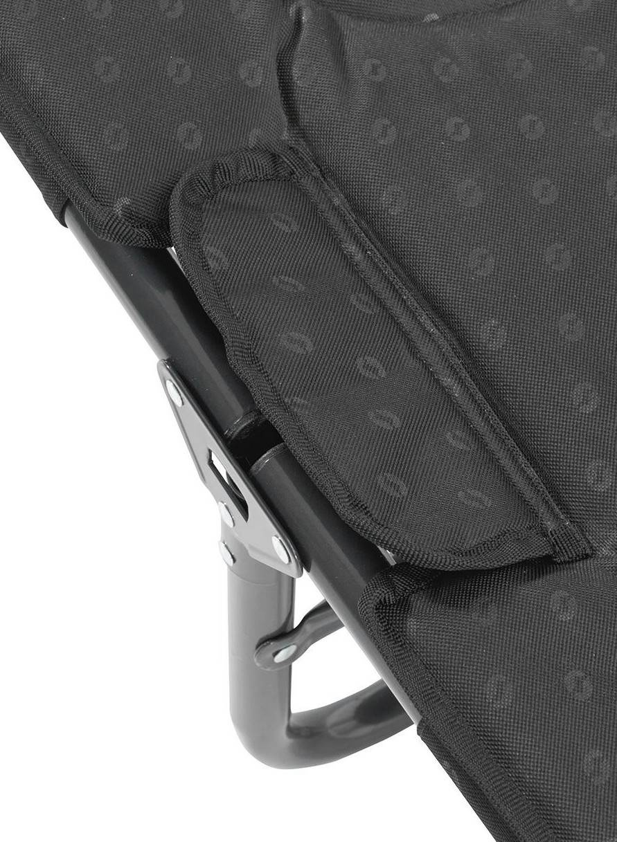 Das Bett ist mit einem Sitz aus Polyester ausgestattet. Seine schnelltrocknenden Eigenschaften sorgen dafür, dass entstehende Feuchtigkeit in der Nacht natürlich abgeführt wird. Im Inneren befindet sich ein Schaumstoff, der das natürliche Liegen erleichtert und somit den Komfort erhöht. Dieses Modell hat einen abnehmbaren Kopfteil im oberen Teil. Es ist aus Schaumstoff und atmungsaktivem Netzgewebe gefertigt und wird nachts im Zelt eine unschätzbare Unterstützung sein. Dank des klappbaren Designs ist das gesamte Bett äußerst tragbar, sodass das Tragen des Bettes einige Dutzend Meter zum Campen kein Problem darstellt. Es ist erwähnenswert, dass für den Aufbau des Bettes keine Werkzeuge erforderlich sind, was äußerst praktisch ist.