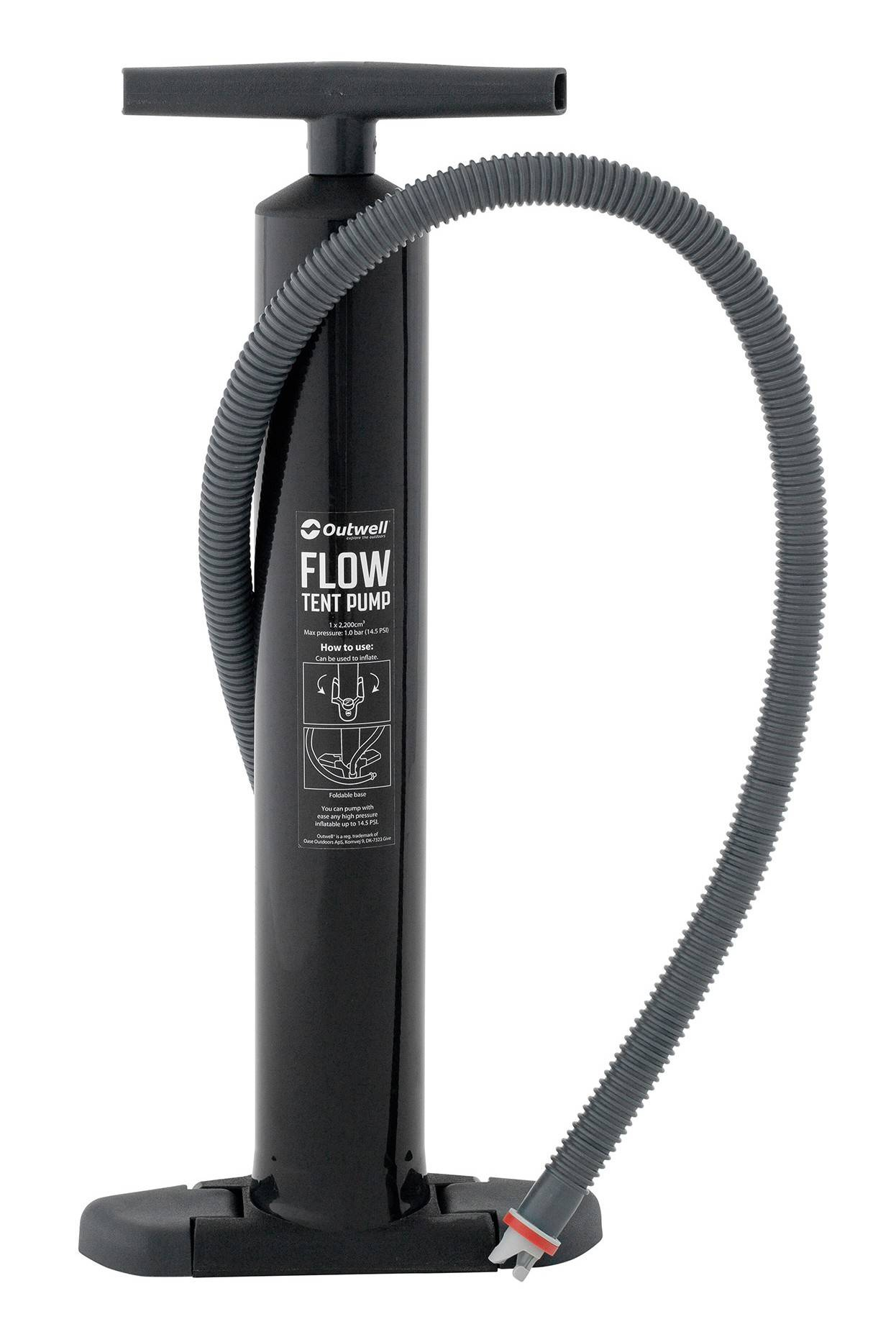 - Dank der Outwell Flow Tent Pumpe kannst du dein Zelt effizient aufblasen. Als Zusatz ist ein Adapter enthalten, der das Aufblasen von Matratzen, Isomatten, Spielzeug und Zelten aus älteren Kollektionen ermöglicht.