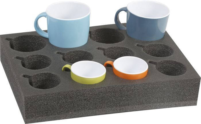 - Schutzbox für Tassen und Gläsern - Weicher Schaumstoff, in dem Platz für die Aufbewahrung von 12 Tassen vorgesehen ist, damit sie sich auf Reisen nicht verschieben und nicht zerbrechen.