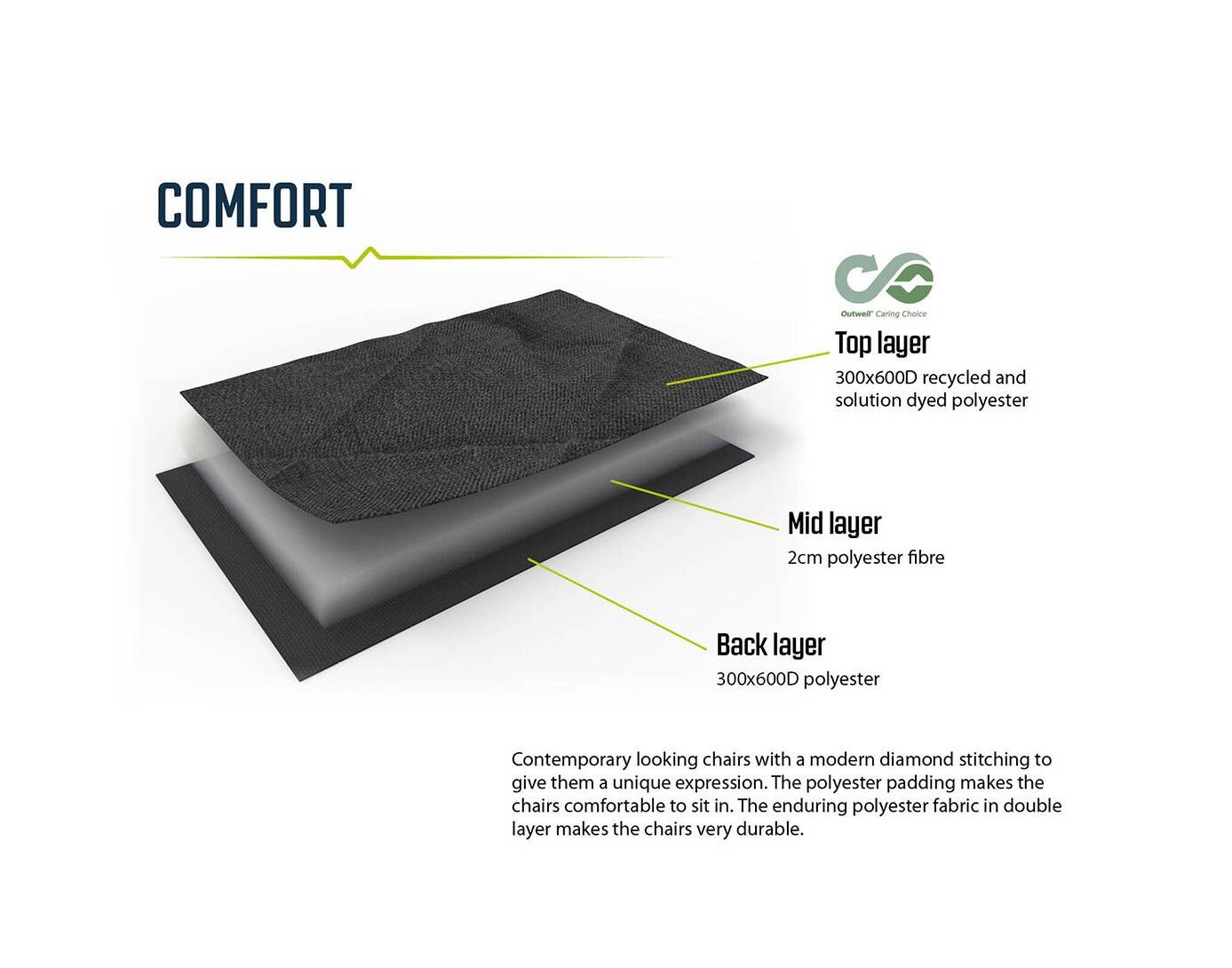 Der Kielder eignet sich sowohl für den Campingplatz als auch für den Garten und bietet dir nach einem langen Tag eine bequeme Sitzgelegenheit. Das Gestell besteht aus robustem Stahl, während Sitzfläche und Rückenlehne aus hochwertigem Polyester gefertigt sind. Dank der Polsterung sorgt der Stuhl für hohen Sitzkomfort.