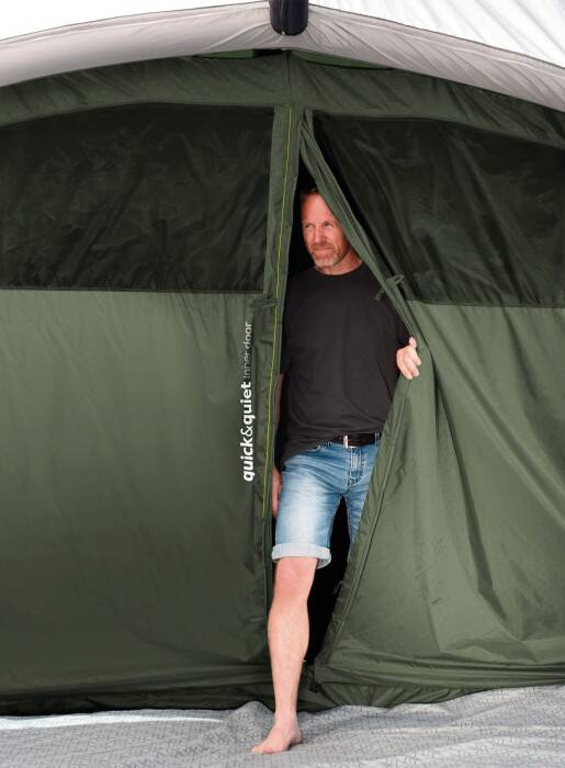 Das Jacksondale 7PA besteht aus 3 Schlafzimmern und 2 geräumigen Vorzelten. Es ist aus robusten und leichten Materialien gefertigt und bietet ein Außenzelt mit optimaler Wasserdichtigkeit, atmungsaktive Schlafzimmer sowie einen laminierten wasserdichten Boden. Das Innere ist mit Haken für Beleuchtung und Türen mit leisen Magnetverschlüssen ausgestattet. Das Modell verfügt über eine aerodynamische Konstruktion, die auf einem aufblasbaren Gestell, mehreren Stangen und verstärkenden Gurten basiert. Im Lieferumfang sind Abspannseile, eine Transporttasche und eine Handpumpe enthalten.