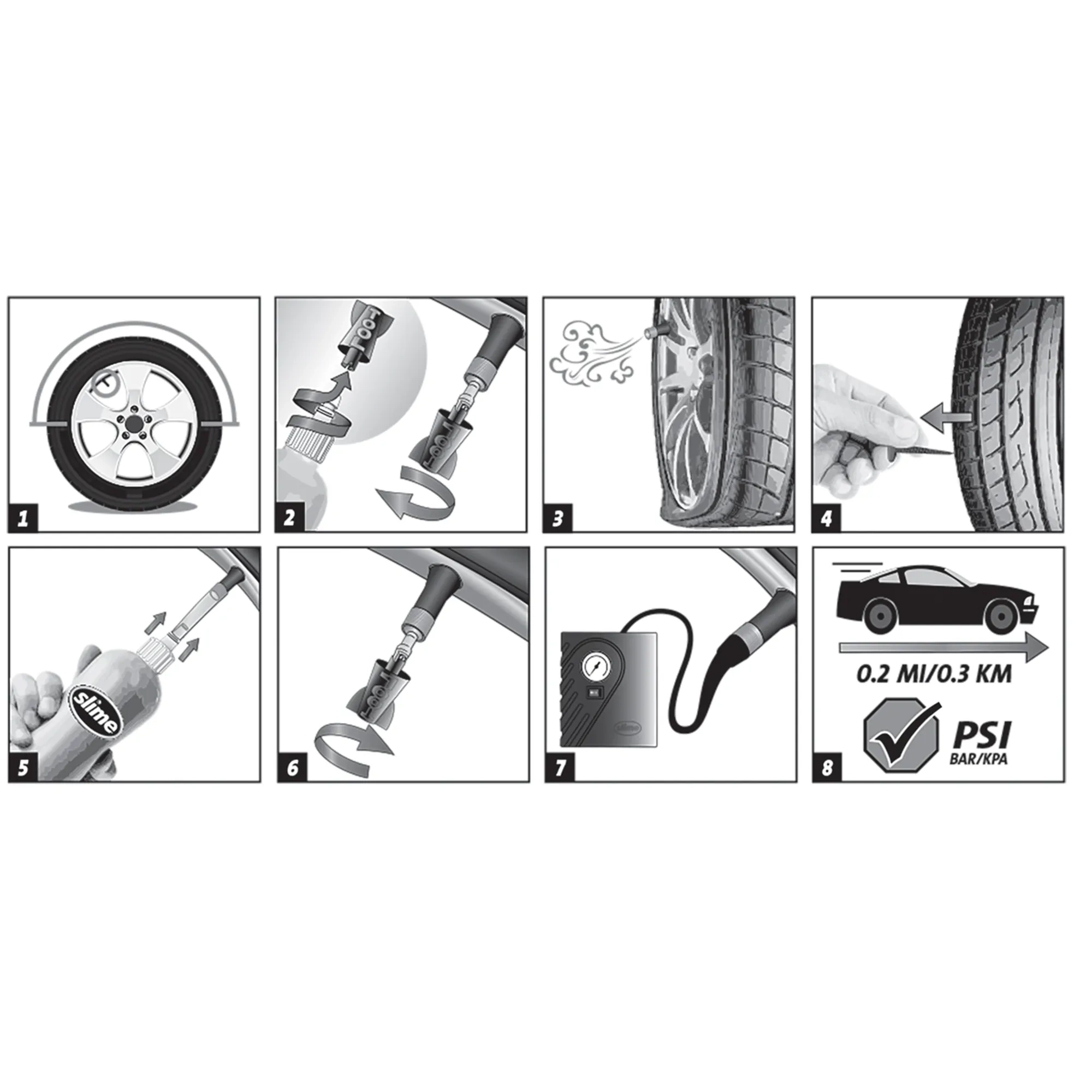 • Complete kit: 473 ml sealant, 12V compressor, and bag